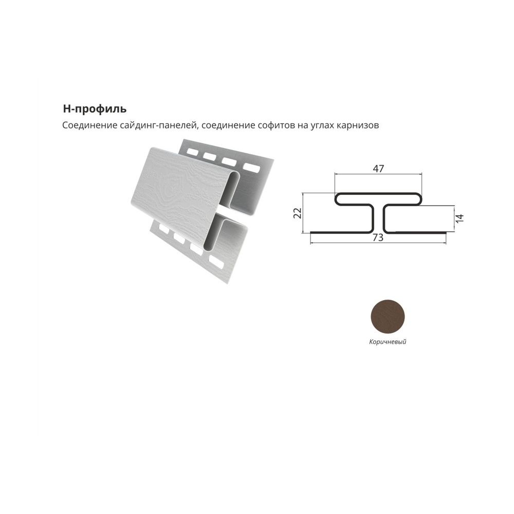 H-профиль Коричневый , можно купить в интернет магазине Сайдинг-Маркет, от производителя ЦентрПласт. Доставим быстро и по всей России. Цена производителя. Все в наличии на складе и на заказ. Гарантия. Заходи — выбирай!