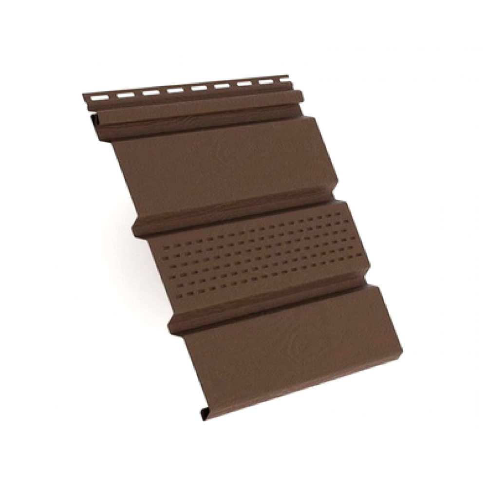 Софит коричневый с центральной перфорацией , можно купить в интернет магазине Сайдинг-Маркет, от производителя Россия. Доставим быстро и по всей России. Цена производителя. Все в наличии на складе и на заказ. Гарантия. Заходи — выбирай!